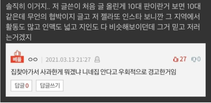 원글 작성자라고 밝힌 한 누리꾼은 "사장님께서 집으로 찾아오셔서 눈물을 호소하시며 사과하셔서 사과받았고 글 삭제했다"라고 설명했다.