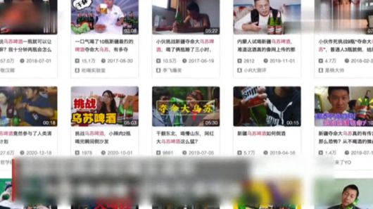 50도가 넘는 독한 바이주(白酒) 500㎜ 1병을 단숨에 들이마시는 사람, 9병을 단번에 마시는사람,러 병 꺼내 넣고 먹거나 주량이 안돼 술을 먹다가 토하는 사람, 심지어 높은 도수의 술 마시기에 도전하거나 값비싼 술을 걸고 내기를 해서 술을 마실 수 있는 기회를 주는 영상도 있다.
