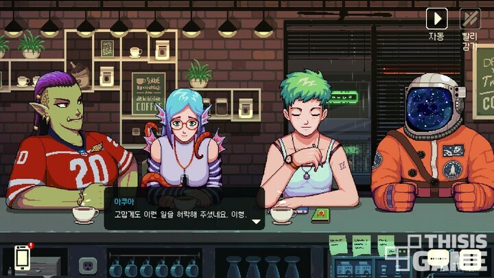 네. 이게 다입니다. 그냥 차분하게 원하는 음료를 만들어 내주고, 여러 종족들이 찾아와 푸념을 하면 유저는 듣기만 하면 되는 그런 게임입니다. 여타 타이쿤 게임처럼 매출에 신경 쓸 필요도 없고, 가게를 성장할 필요도 없습니다.