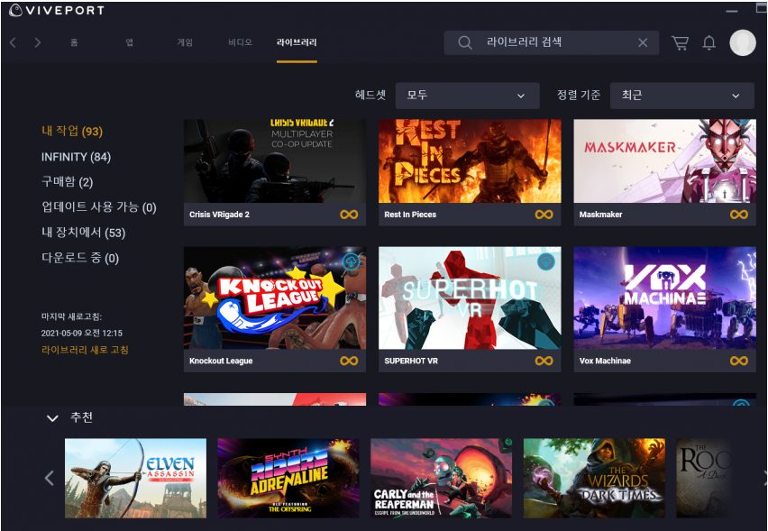 "VIVEPORT NIFINITY(바이브포트인피니티)" 라는 플랫폼이 있습니다. 게임뿐만 아니라 영상도 앱도 많이 있습니다.
